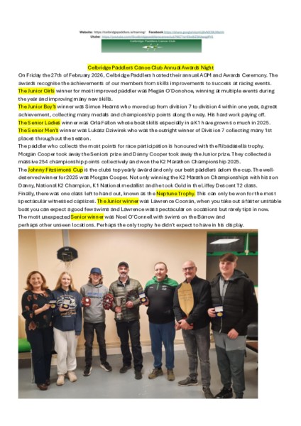 Celbridge Wild Water Race Report, Marathon Awards, Gym update, and more!